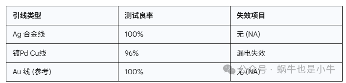 由于镀Pd Cu线在电测中已出现漏电问题,可靠性测试仅针对Ag合金线进行。